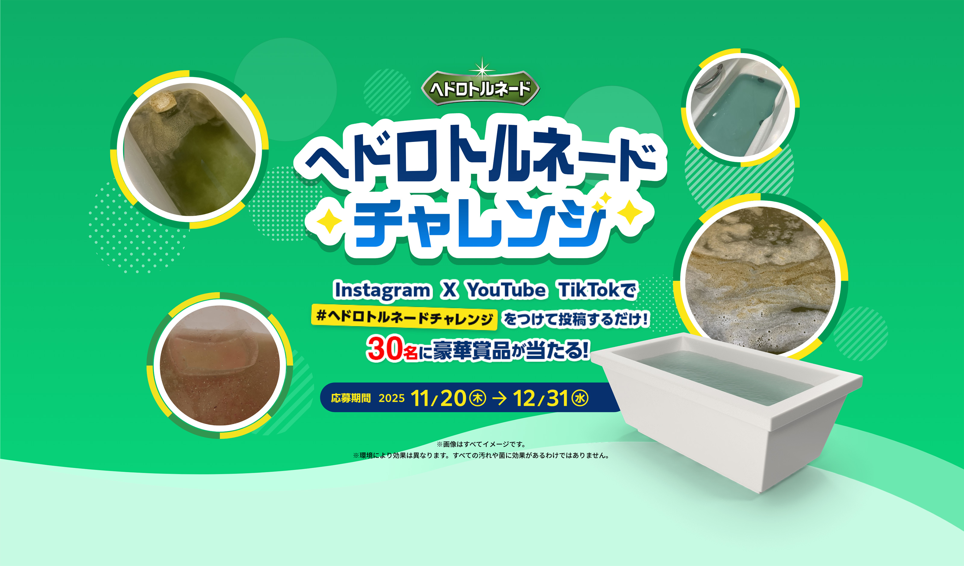 - 「ヘドロトルネード」を使用した浴槽の様子を動画または写真撮影し、ハッシュタグ「#ヘドロトルネードチャレンジ」を付けてSNS(X/Instagram/Tiktok/YouTube)で投稿